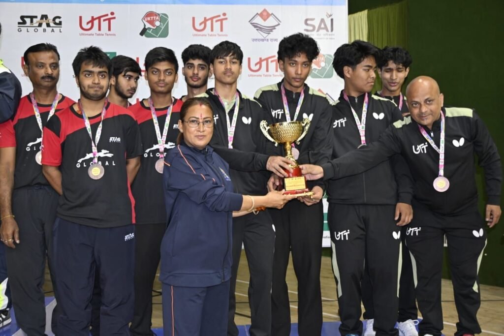 देहरादून में आयोजित अंडर-19 बॉयज़ टेबल टेनिस प्रतियोगिता में तमिलनाडु की टीम ने शानदार प्रदर्शन करते हुए खिताब अपने नाम कर लिया। फाइनल मुकाबले में तमिलनाडु के खिलाड़ियों ने बेहतरीन तालमेल और आक्रामक खेल दिखाते हुए जीत दर्ज की, जबकि महाराष्ट्र की टीम ने दमदार खेल के बावजूद सिल्वर मेडल से संतोष करना पड़ा।