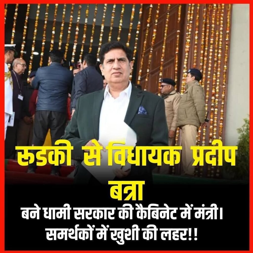 शपथ लेने वाले नेताओं में हरिद्वार से मदन कौशिक, रुड़की से प्रदीप बत्रा, रुद्रप्रयाग से भरत सिंह चौधरी, देहरादून से खजान दास और नैनीताल से राम सिंह कैड़ा शामिल हैं। सभी मंत्रियों ने प्रदेश के विकास के लिए समर्पित होकर काम करने और मुख्यमंत्री धामी के नेतृत्व में उत्तराखंड को नई ऊंचाइयों तक पहुंचाने का संकल्प लिया।