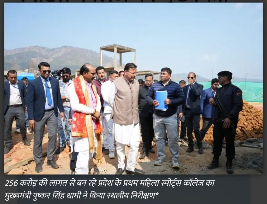 जनपद चम्पावत के लोहाघाट क्षेत्र स्थित छमनिया में लगभग ₹256 करोड़ की लागत से निर्माणाधीन राज्य के प्रथम महिला स्पोर्ट्स कॉलेज का शुक्रवार को मुख्यमंत्री श्री पुष्कर सिंह धामी द्वारा स्थलीय निरीक्षण किया गया। मुख्यमंत्री ने निर्माण कार्यों की प्रगति का विस्तृत अवलोकन करते हुए कार्यदायी संस्था एवं विभागीय अधिकारियों को निर्देश दिए कि समस्त कार्य निर्धारित समयसीमा में उच्च गुणवत्ता मानकों के अनुरूप पूर्ण किए जाएँ। मुख्यमंत्री ने निरीक्षण के दौरान निर्माणाधीन फुटबॉल ग्राउंड, एस्ट्रोटर्फ हॉकी ग्राउंड, वॉलीबॉल कोर्ट, बास्केटबॉल कोर्ट, सिंथेटिक एथलेटिक ट्रैक सहित अन्य खेल मैदानों की प्रगति की समीक्षा की। साथ ही खिलाड़ियों हेतु 300 बालिकाओं की क्षमता वाले छात्रावास, स्टाफ क्वार्टर, प्रशासनिक भवन, एकेडमिक ब्लॉक, मल्टीपर्पज हॉल, ऑडिटोरियम एवं गेस्ट हाउस के निर्माण कार्यों की भी जानकारी ली। मुख्यमंत्री श्री धामी ने कहा कि लोहाघाट में स्थापित हो रहा यह महिला स्पोर्ट्स कॉलेज प्रदेश की बेटियों को अंतरराष्ट्रीय स्तर की खेल सुविधाएँ प्रदान करेगा। यहाँ विकसित की जा रही सभी खेल व्यवस्थाएँ अंतरराष्ट्रीय मानकों के अनुरूप होंगी, जिससे प्रदेश की महिला खिलाड़ी राष्ट्रीय एवं अंतरराष्ट्रीय प्रतियोगिताओं में उत्कृष्ट प्रदर्शन कर राज्य का नाम रोशन करेंगी। उन्होंने कहा कि यह संस्थान प्रशिक्षण, शिक्षा एवं आवास की समग्र व्यवस्था उपलब्ध कराते हुए विशेष रूप से ग्रामीण एवं पर्वतीय क्षेत्रों की प्रतिभाशाली बालिकाओं को आगे बढ़ने का सशक्त मंच प्रदान करेगा।